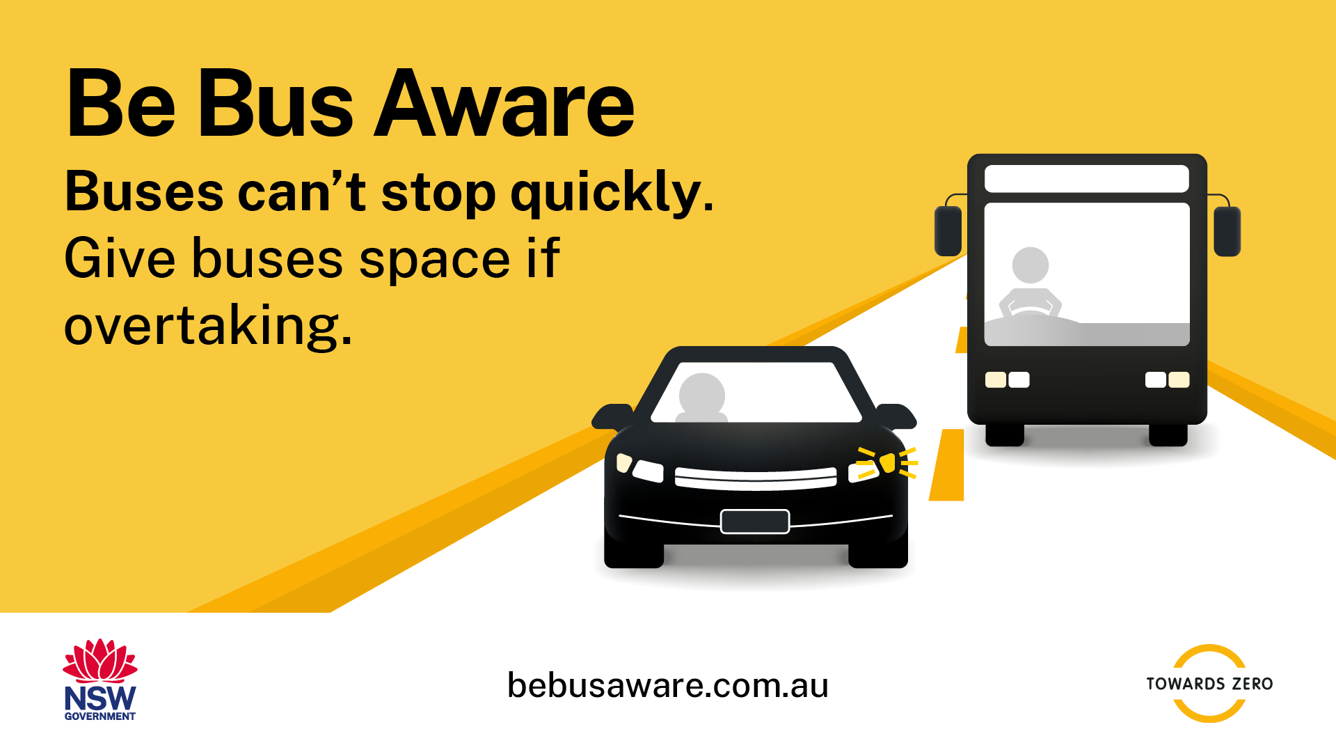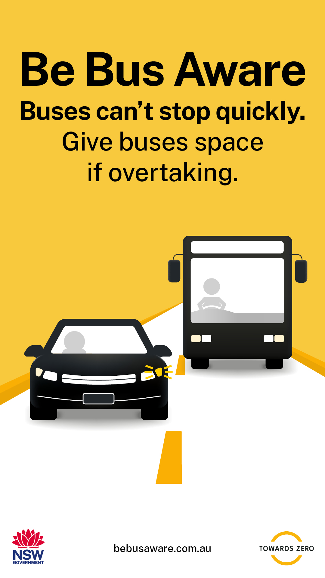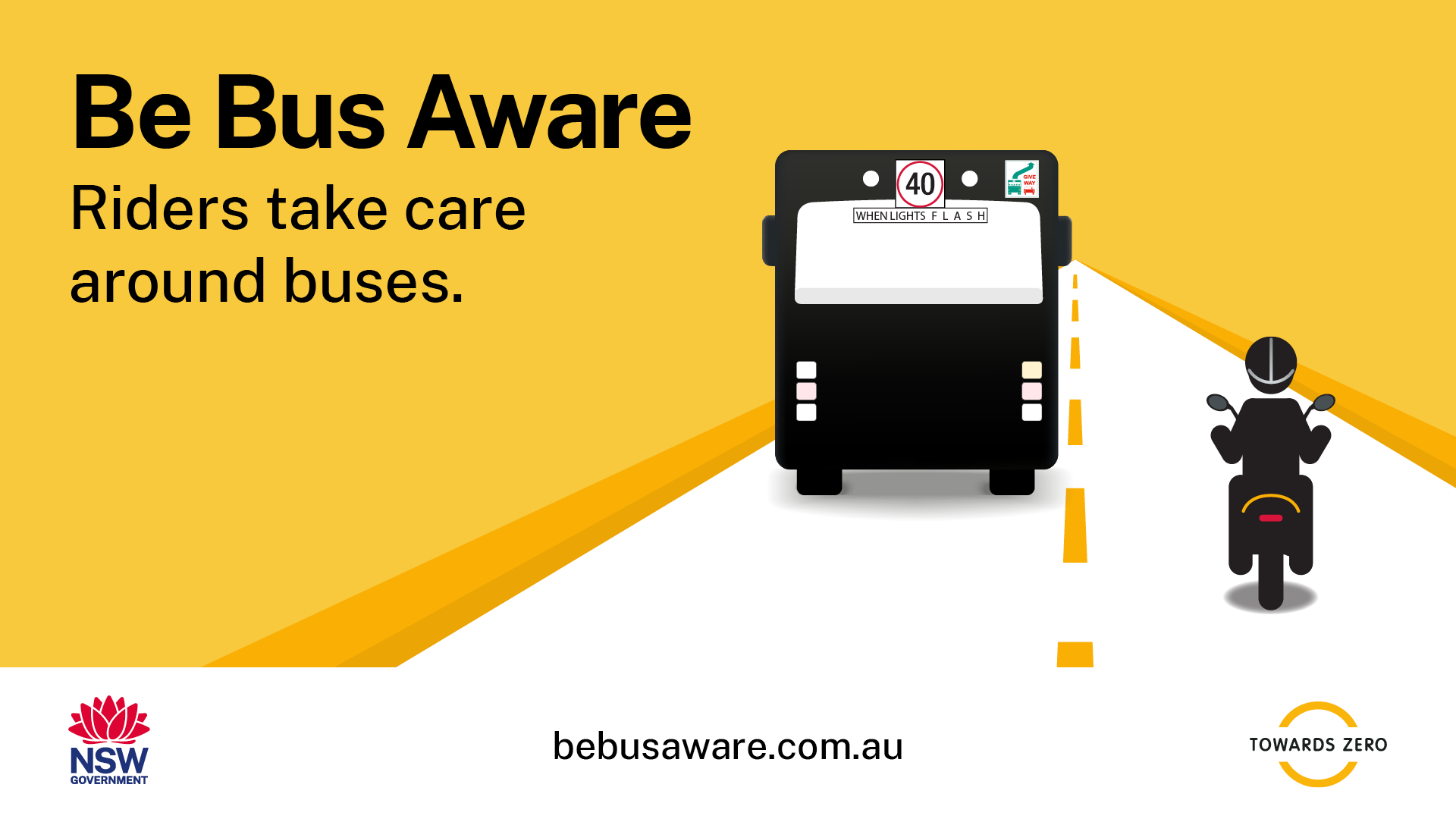 Some bus stops in rural and regional NSW do not have signs or other infrastructure. Take extra care when driving in these areas. Be aware of children crossing or about to cross the road and slow down to 40km/h when bus lights flash. #BeBusAware