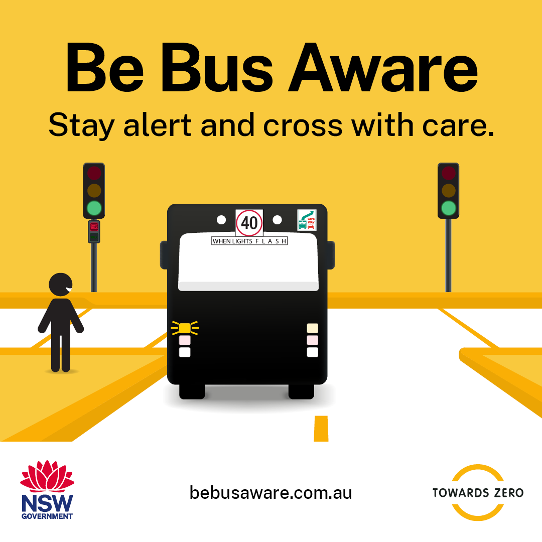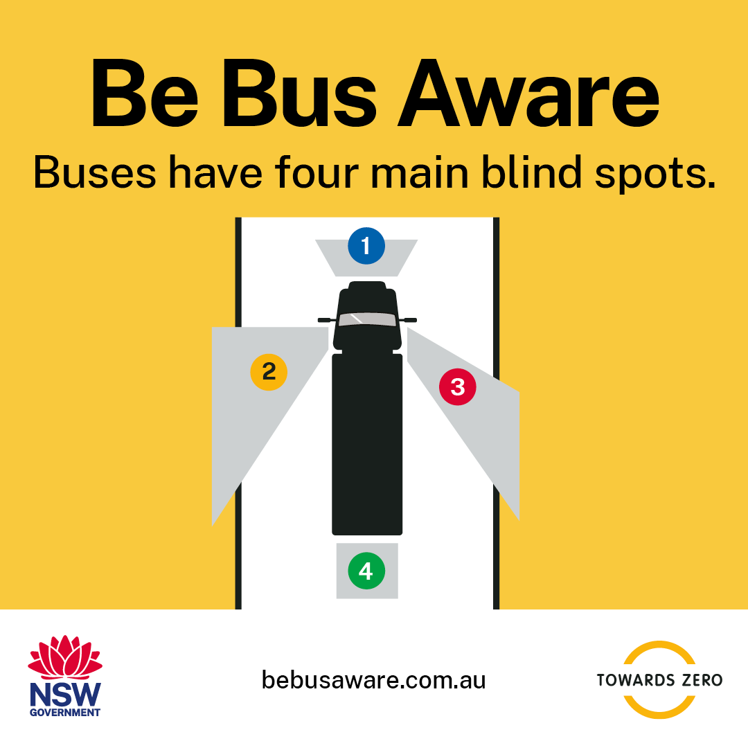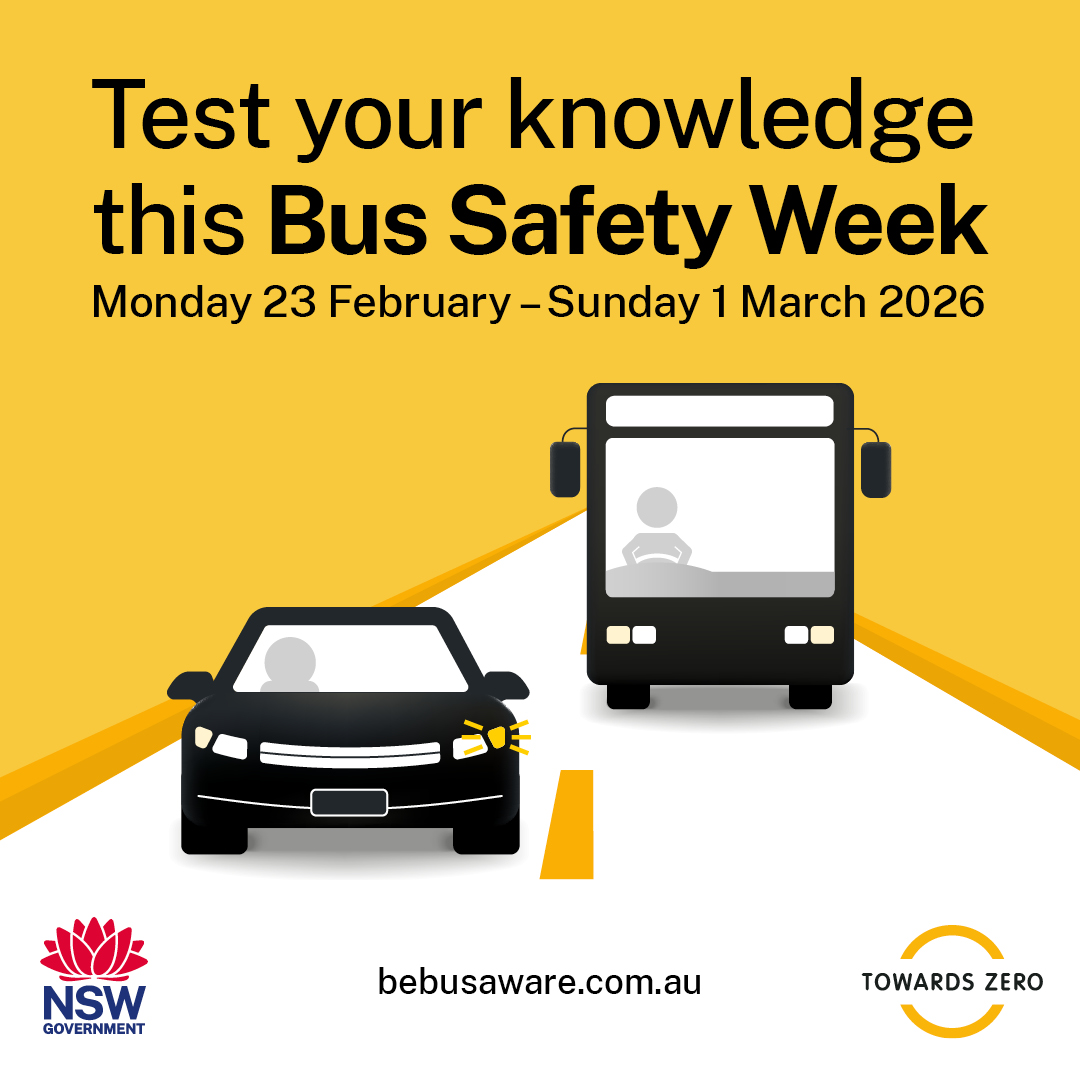 Monday 23 February – Sunday 1 March 2026 is Bus Safety Week! Buses are large, heavy vehicles. They can’t stop quickly and have large blind spots than other vehicles. Whether you’re out walking, riding or driving, Be Bus Aware. #BeBusAware |