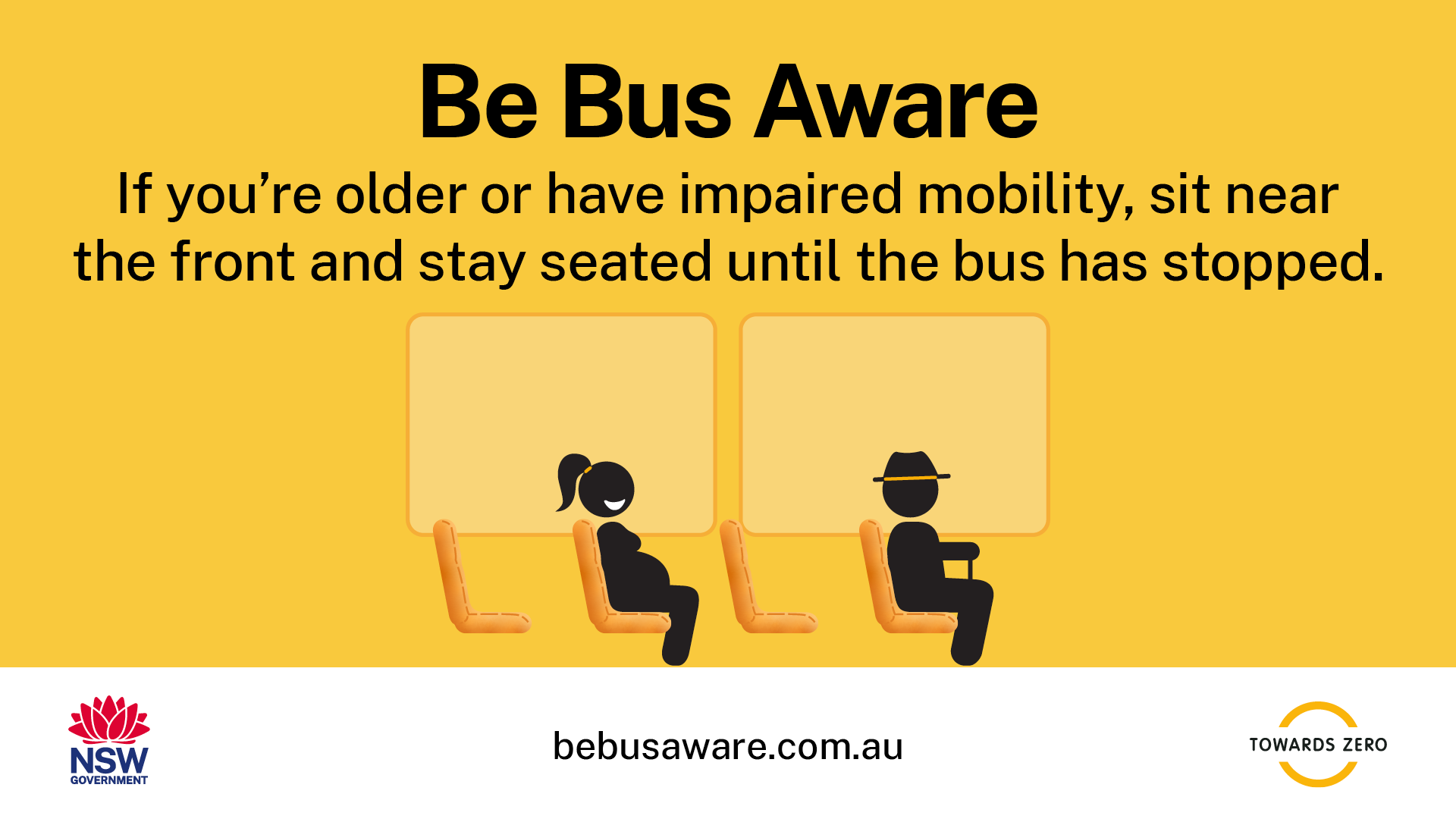 When on board public transport, offer your seat to someone who needs it more than you. This includes people who are older, who have a disability or impaired mobility, or who are pregnant or travelling with children. Being courteous can help make the trip safer and more enjoyable for everyone. #BeBusAware